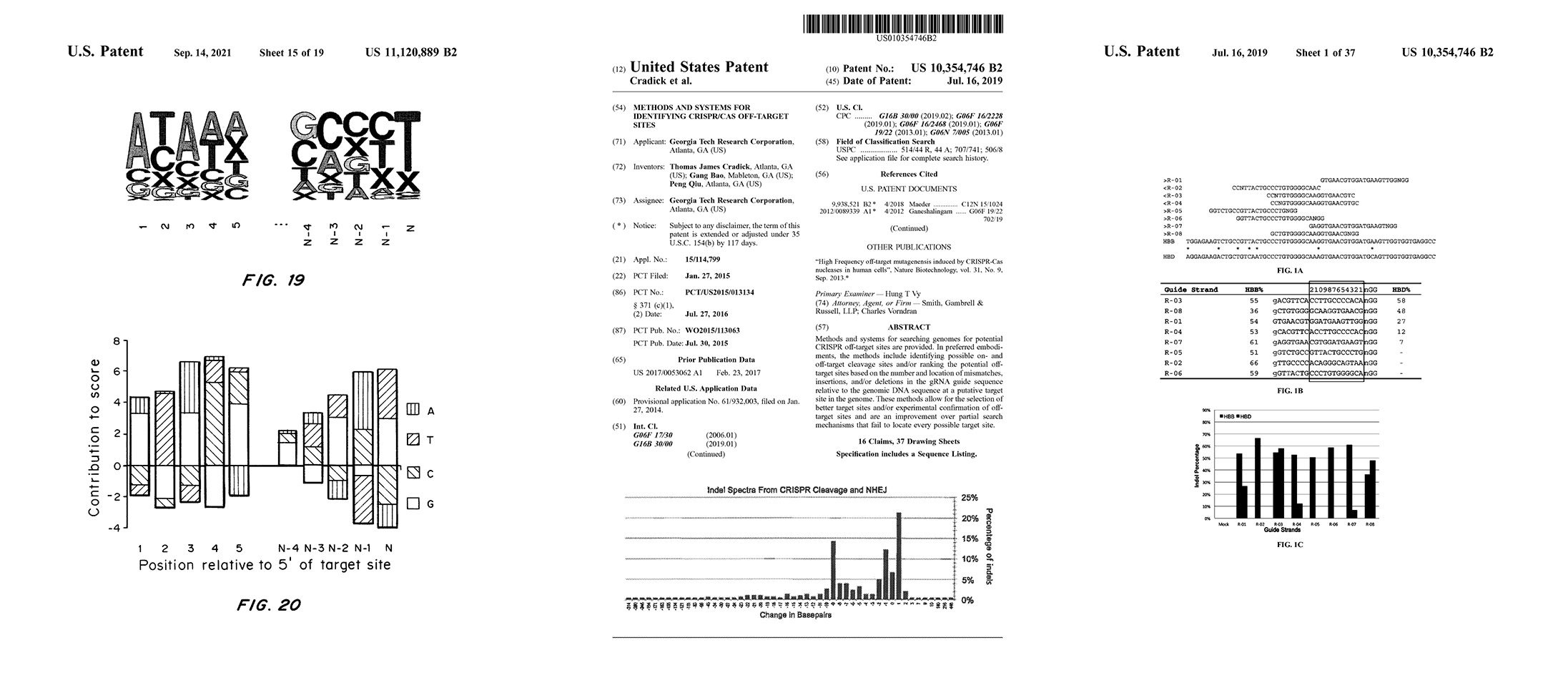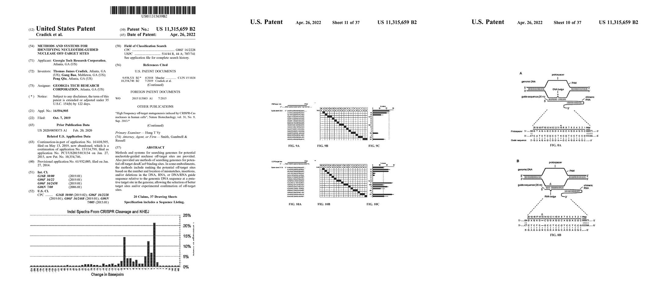 Licensed patent covering methods and systems for searching genomes for potential CRISPR off-target sites based on the number and location of mismatches, insertions, and/or deletions in the gRNA guide sequence relative to the genomic DNA sequence at a putative target site in the genome. (This covers searching for sites with bulges or gaps between the guide RNA and DNA sequences).